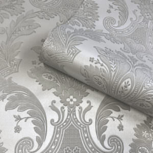 Belgravia Amara Damask Heavyweight Textured Vinyl Wallpaper Silver 7370