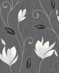 Crown Vymura Synergy Floral Black & Silver Wallpaper M0783