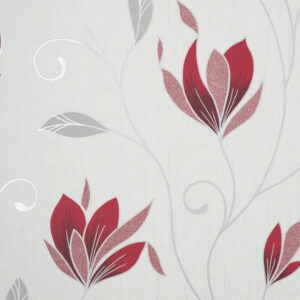 Crown Synergy Floral Red Silver Leaf Textured Glitter Wallpaper M1718