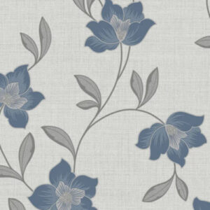 Fine Decor Larson Navy/Silver Metallic Floral Textured Wallpaper FD43067