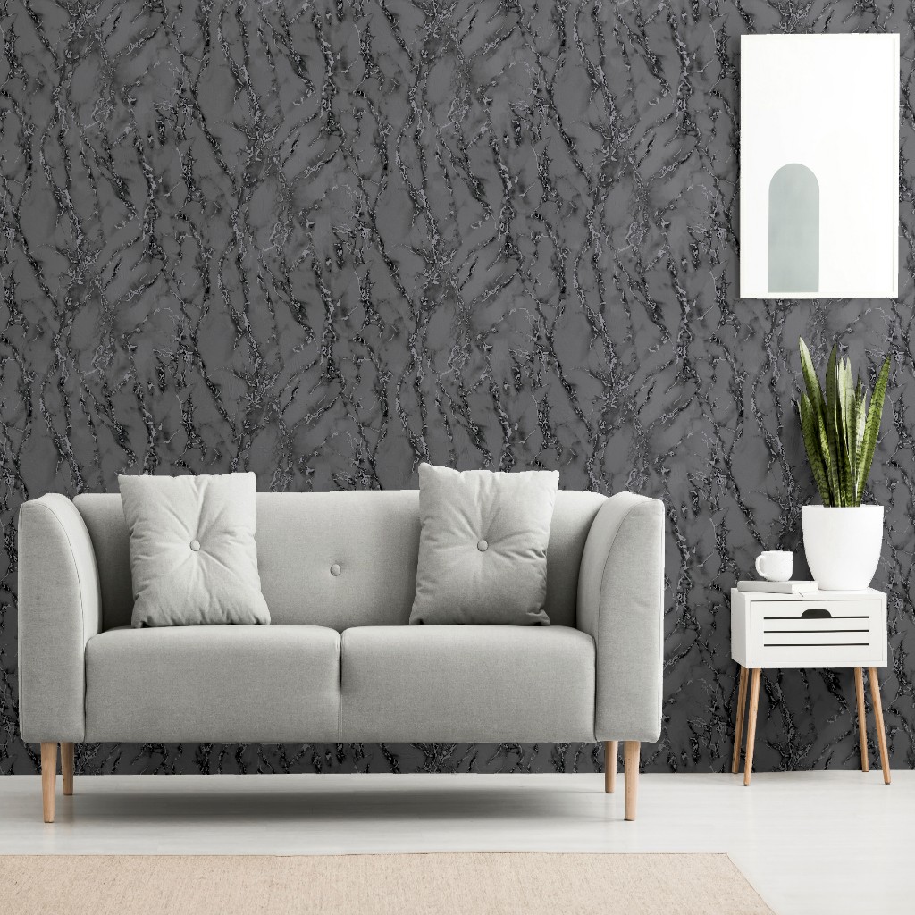 This marble-effect wallpaper is the perfect choice if you want to bring a room up to date in an understated way. It comes in a rich charcoal colour which is wonderfully versatile and will go with so many colours schemes. Hang this wallpaper on its own or team it up with a bolder patterned wallpaper to suit your style. Either way, this is the perfect choice for a sophisticated living room, dining room, kitchen, hall or bedroom. Hanging Method: Paste the Paper Pattern Match: Off Set 32cm Pattern Repeat: 64cm