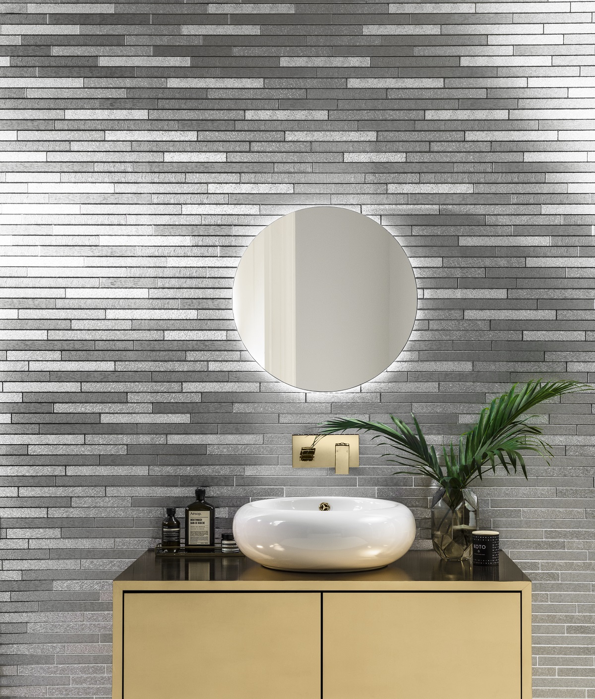 This textured wallpaper is reminiscent of a traditional slate wallpaper design yet features a metallic silver foil finish for a dramatic look.