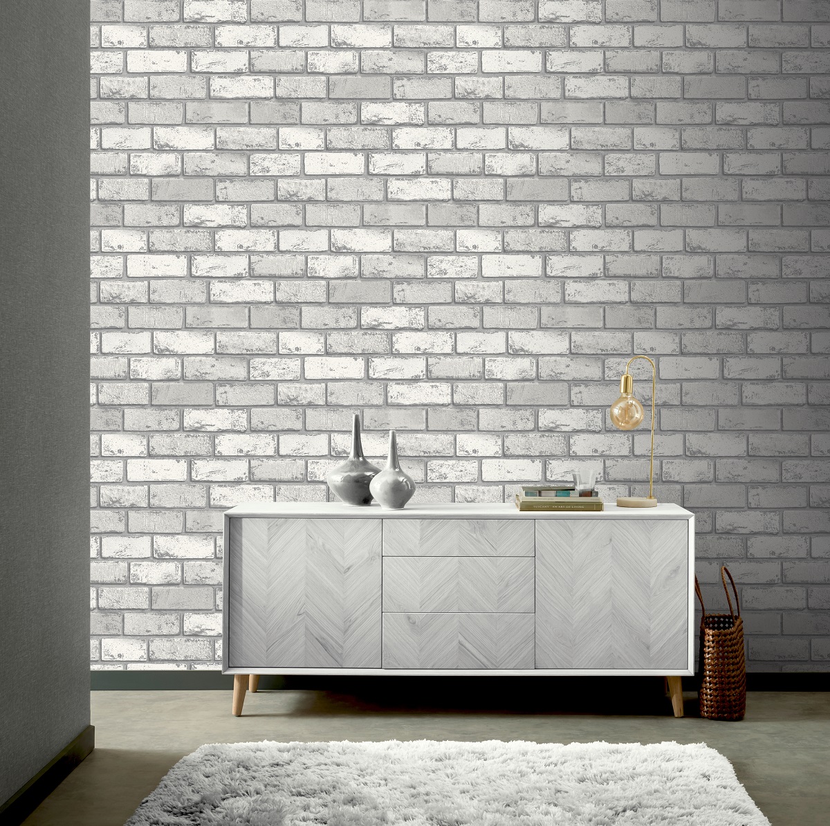 This contemporary white brick wallpaper is a great choice to bring an exposed wall illusion to any room.