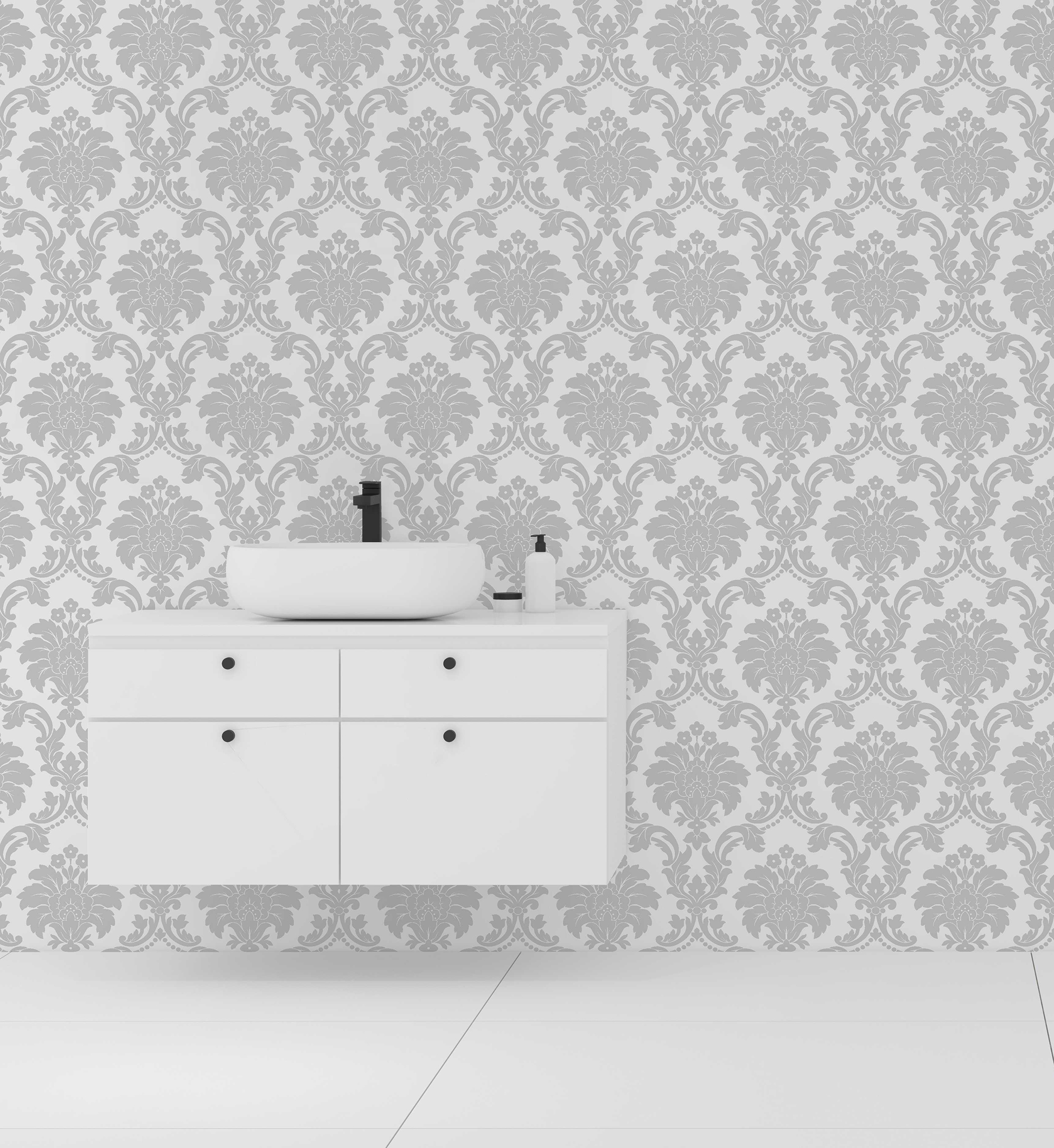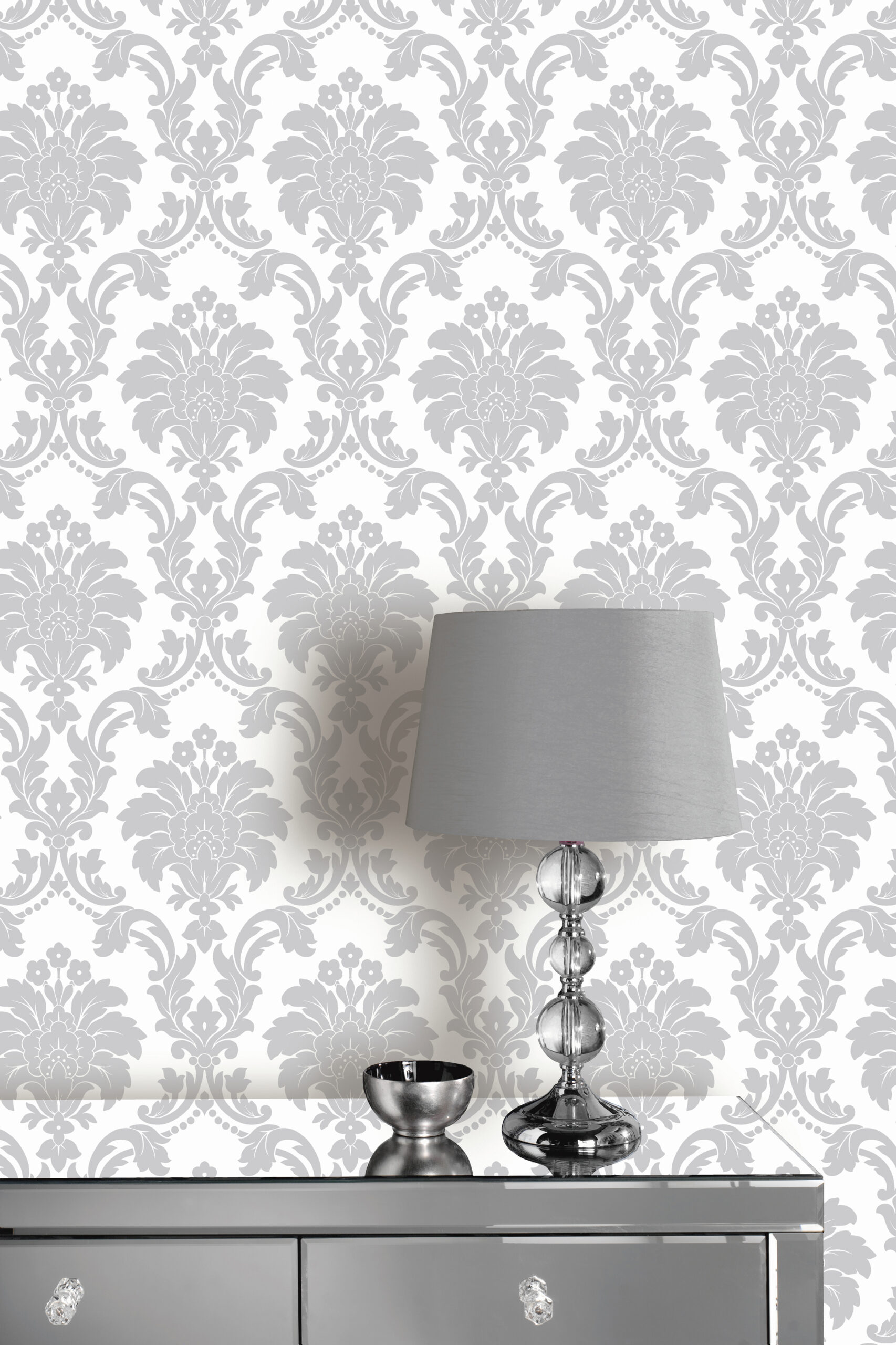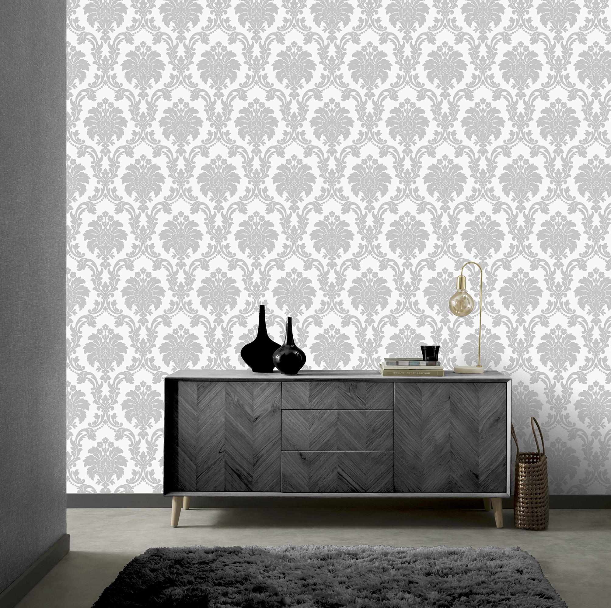 The Romeo Damask wallpaper from Arthouse is a superb modern take on a traditional wallpaper design, and is ideal for a feature wall, paired with another wallpaper, or running throughout a room