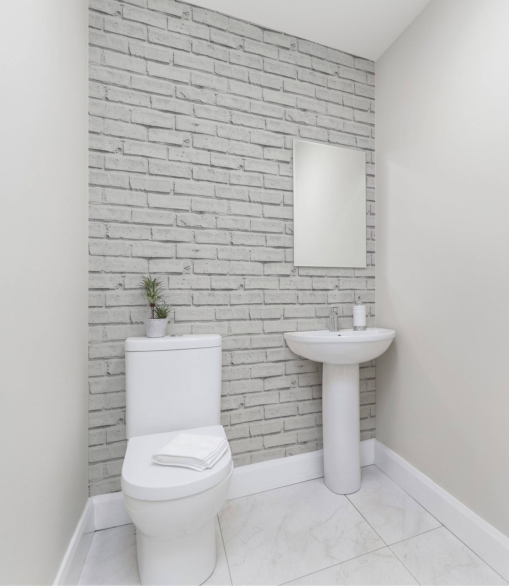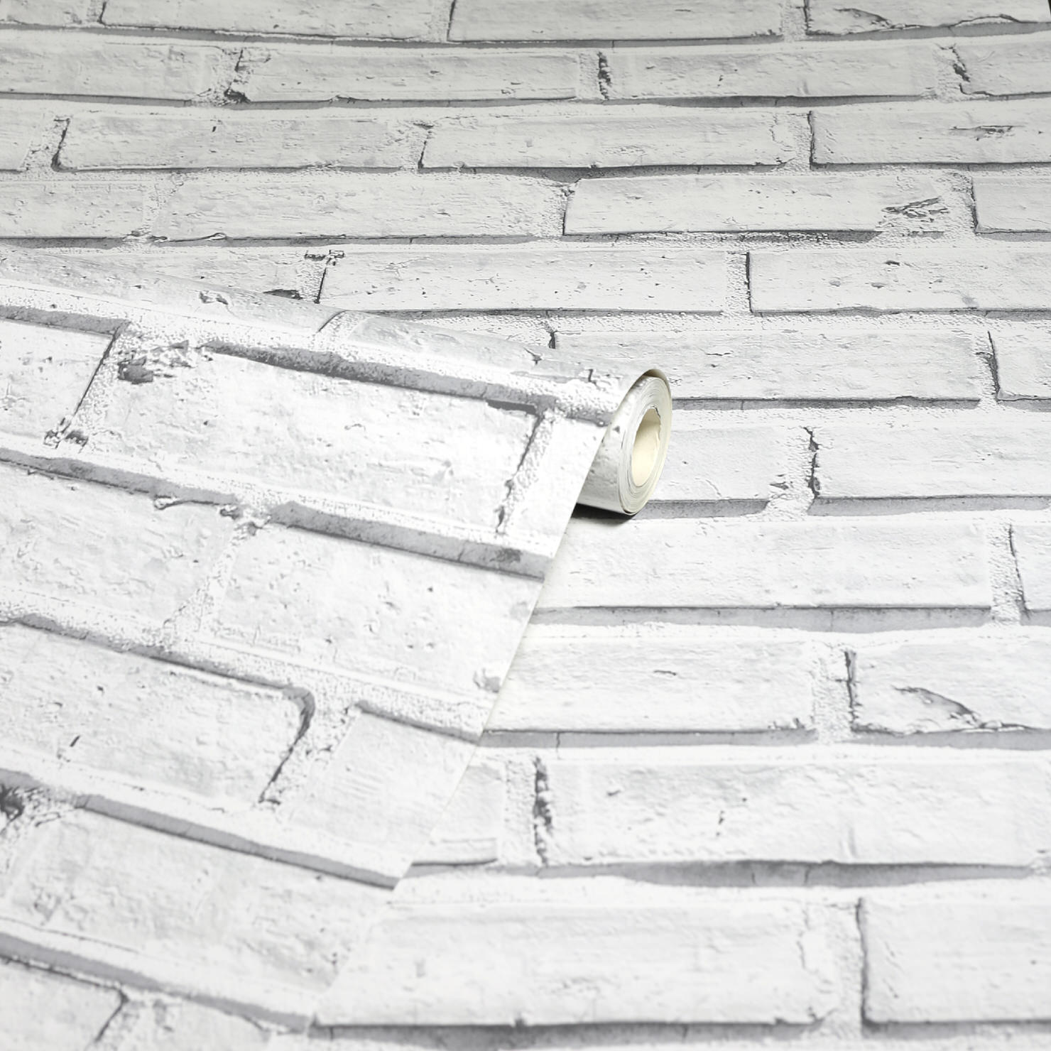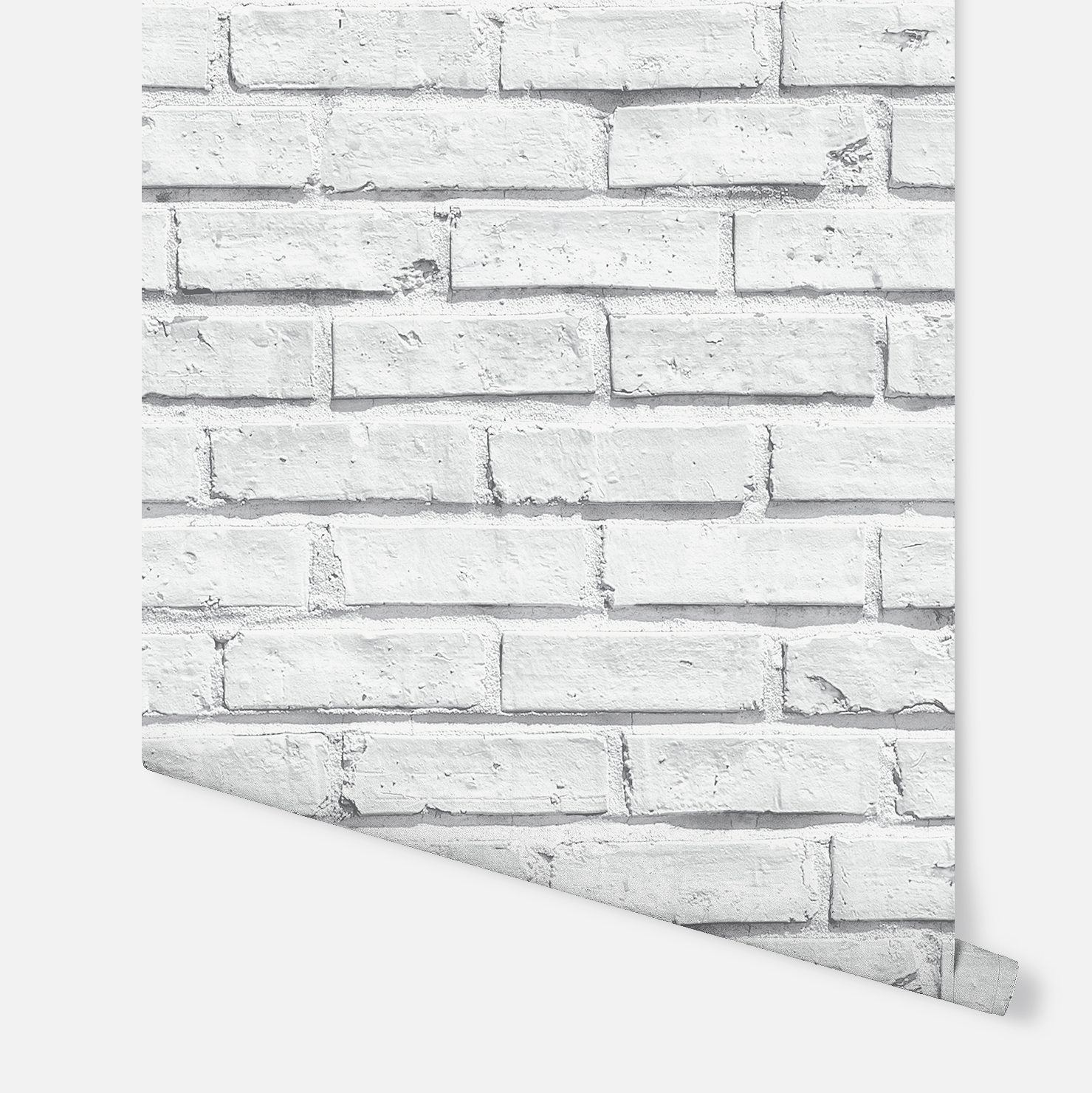 The wallpaper features a brick effect which resembles a white painted exterior wall.