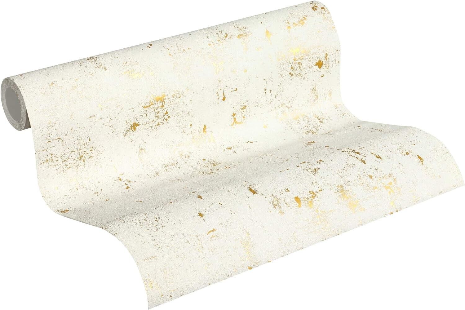The AS Creation concrete effect white and gold wallpaper is a perfect fit for any modern home. This luxurious wallpaper is guaranteed to bring your home into an everlasting trend. The wallpaper features an artistic industrial texture print in a white and gold colour scheme.
