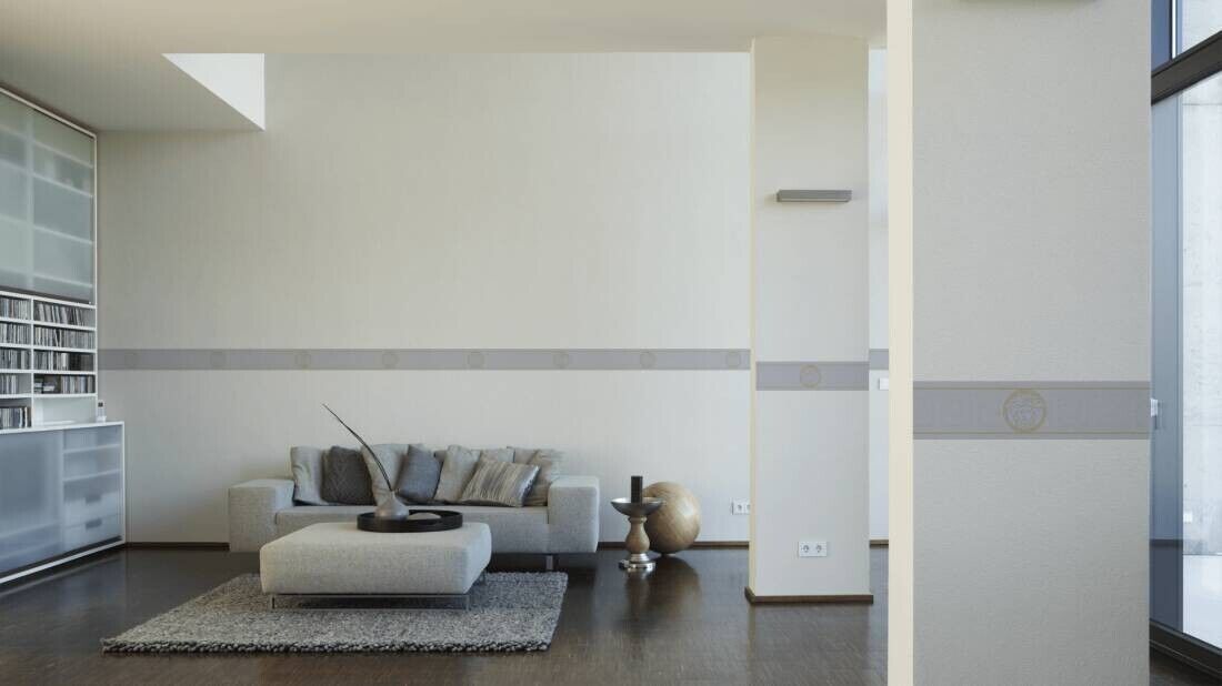 This wallpaper border takes the glamour and luxury of VERSACE into everyday living. Produced in collaboration with German manufacturer AS Cr?ation the wallcovering VERSACE HOME 5 represents an emblematic interpretation of the iconic DNA of the famous Italian brand. A vinyl-based surface with satin finish, classy sheen and subtle texture provides an unmistakable aesthetic and splendid character to the wallpaper border with non-woven backing.