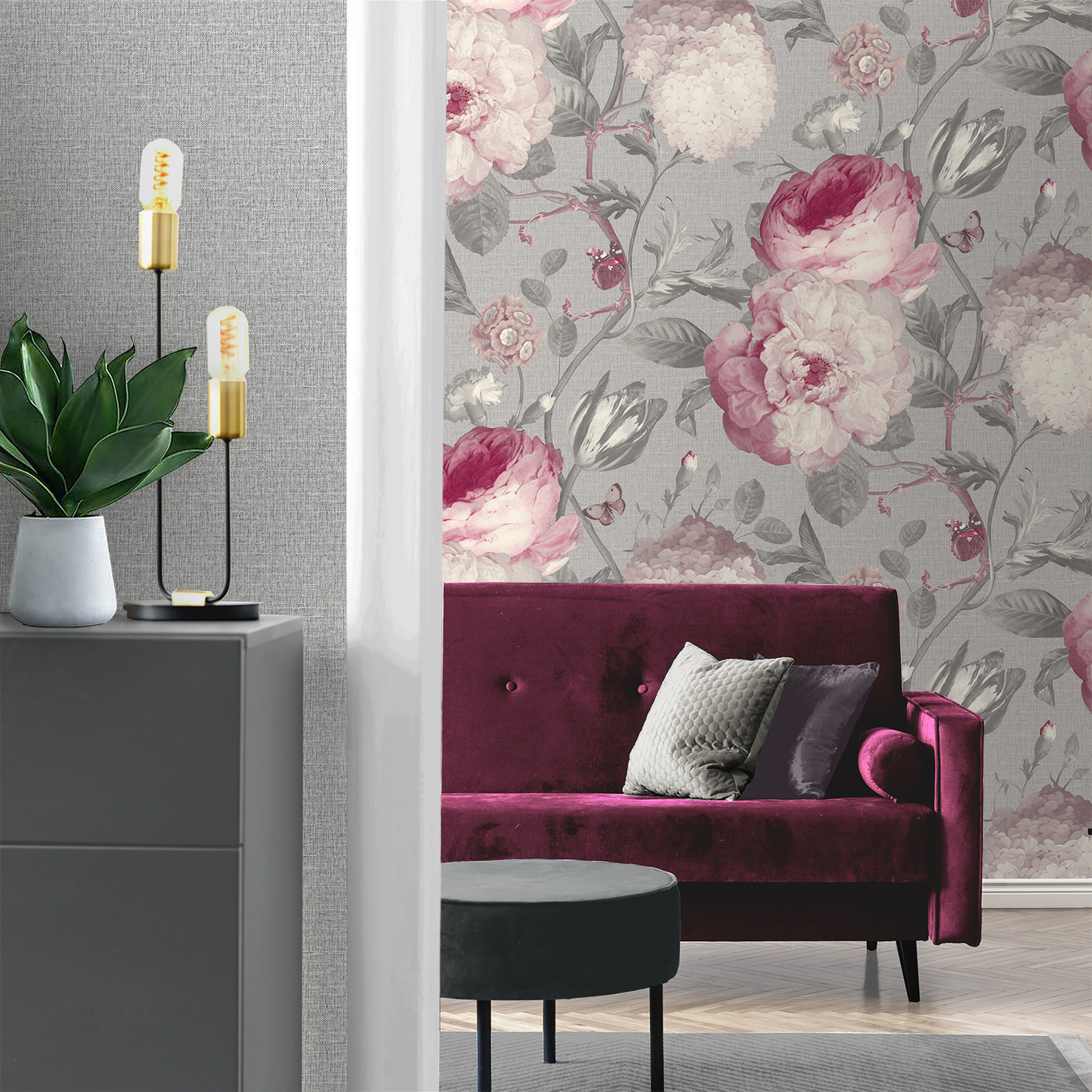 Giorgio floral has, beautiful bold floral and butterfly print with beautiful colour tones a truly luxury heavyweight vinyl that hides wall defects, is moisture and grease resistant and also scrubbable. compliments the Giorgio textured design ready mixed adhesive recommended.