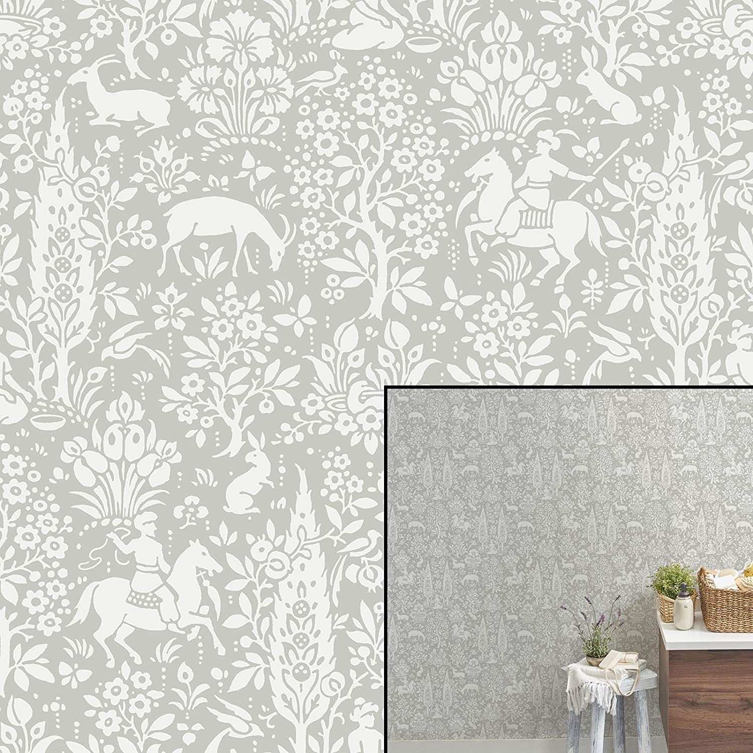 The Crown Woodland Floral Grey Wallpaper is a great way to add style to your home this season. This eye-catching wallpaper design is inspired by a woodblock 19th Century design and is packed full of adventure, Featuring natural elements, wildlife and characters, it tells a story and is sure to make a welcome addition to any room.