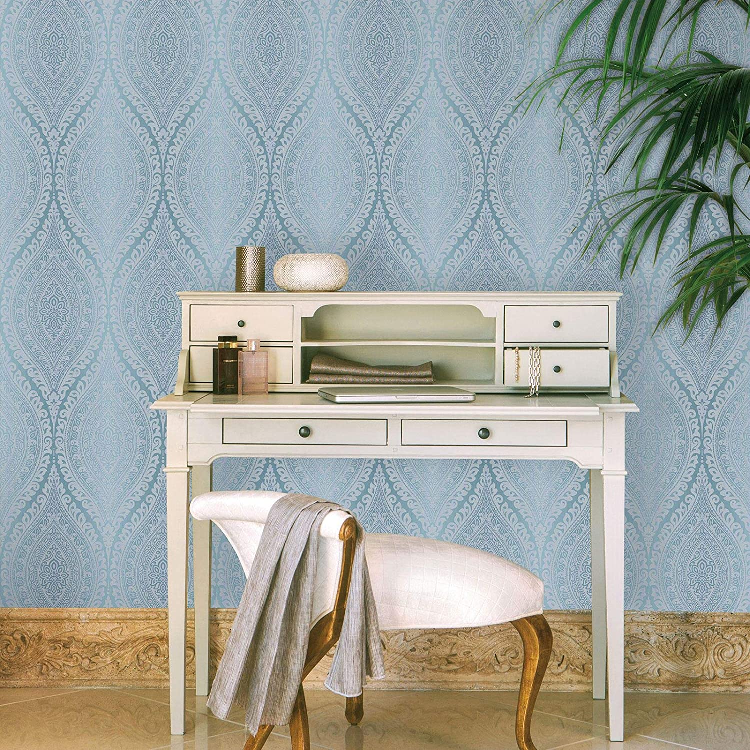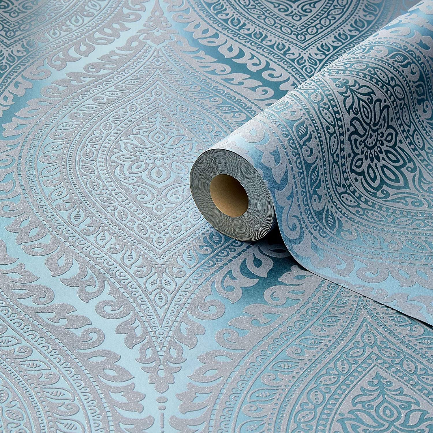 This superb Kismet Damask wallpaper from Grandeco is ideal for a feature wall, paired with another paper, or running throughout a room