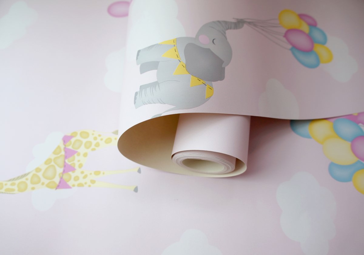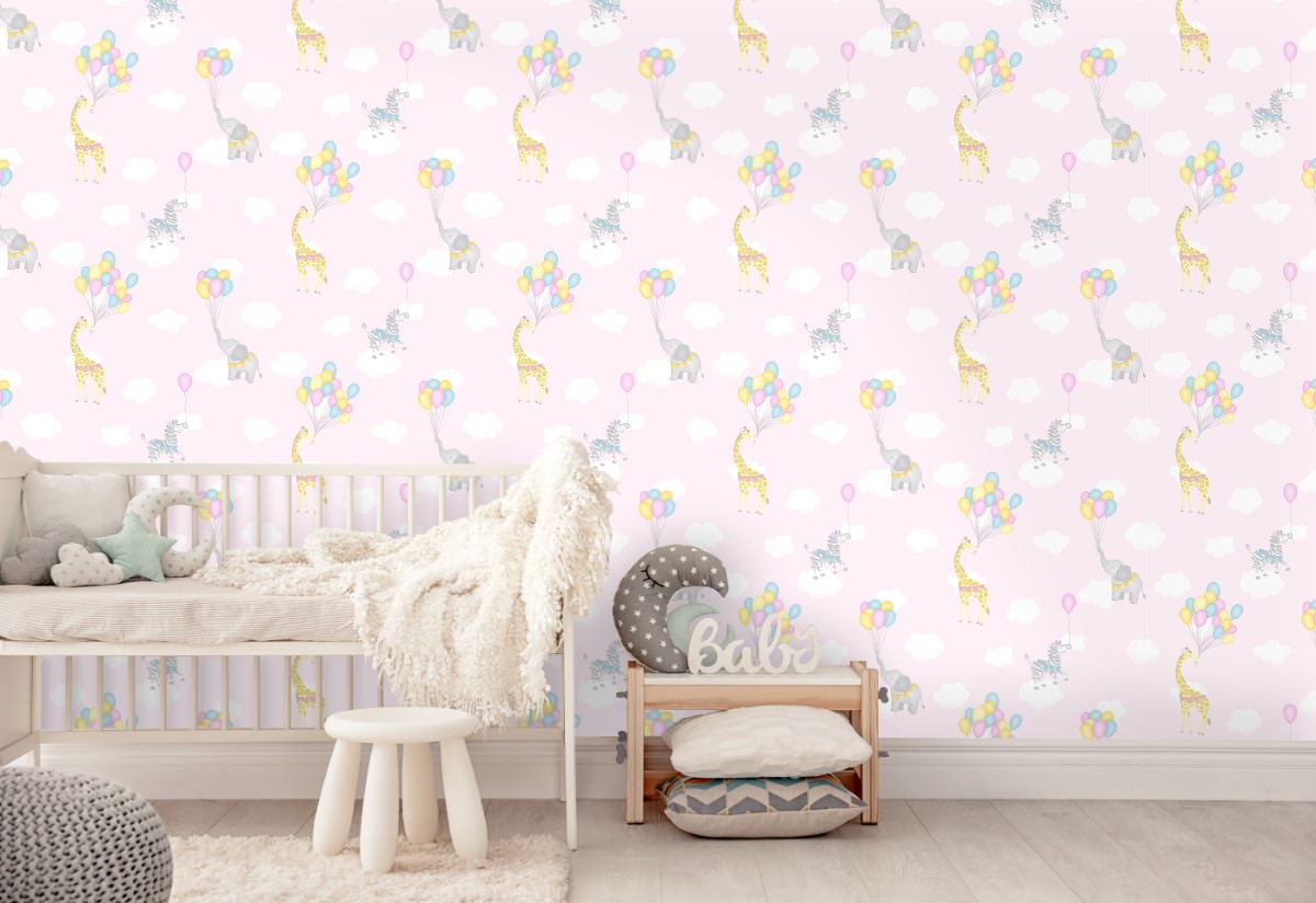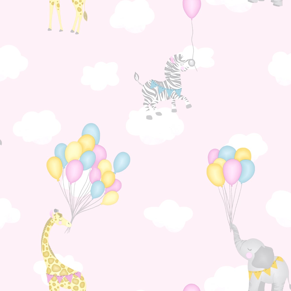 This beautiful wallpaper is part of the much loved Over the Rainbow Wallpaper Collection and is sure to make a welcome addition to any room. The wallpaper features a fun animal print complete with balloons.