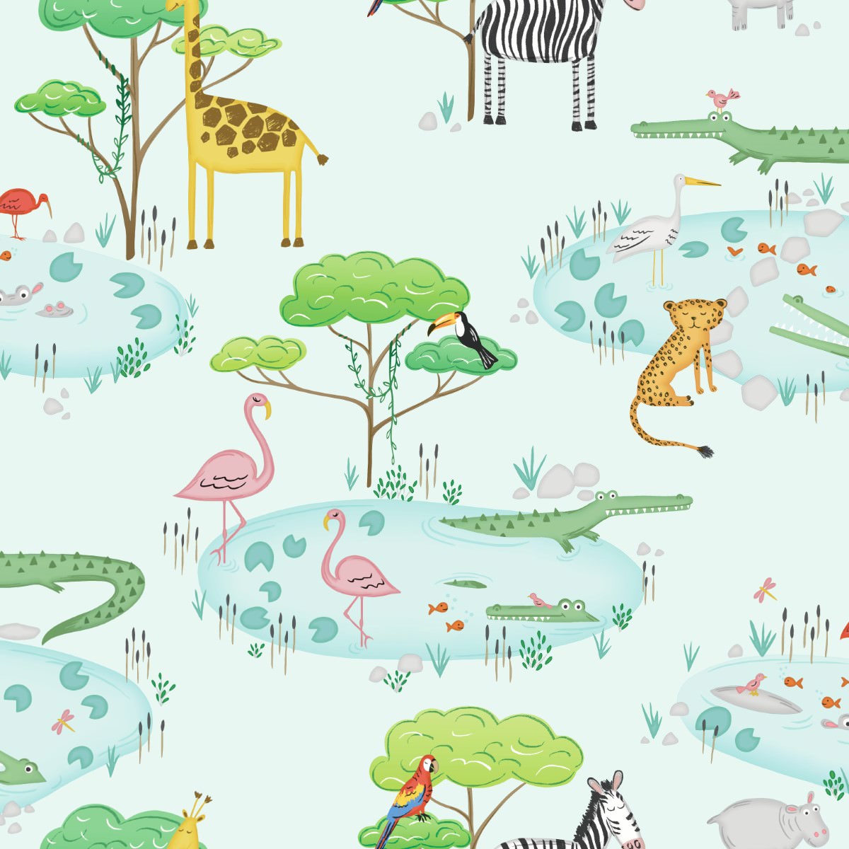 The Holden D?cor Crocodile Animals Lake White Multi Wallpaper is a great way to add colour to your child?s life this season.