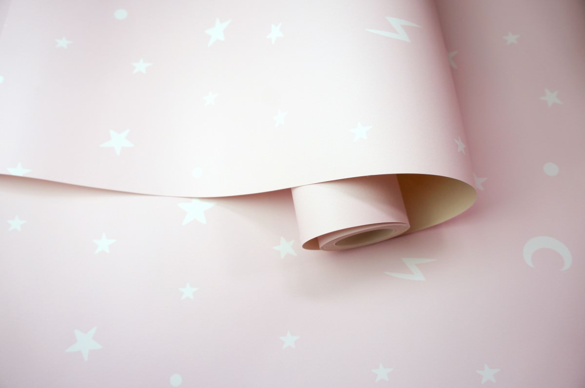 After dark, the Holden D?cor Stars and Moon Glow in the Dark Wallpaper comes to life for a great finish.