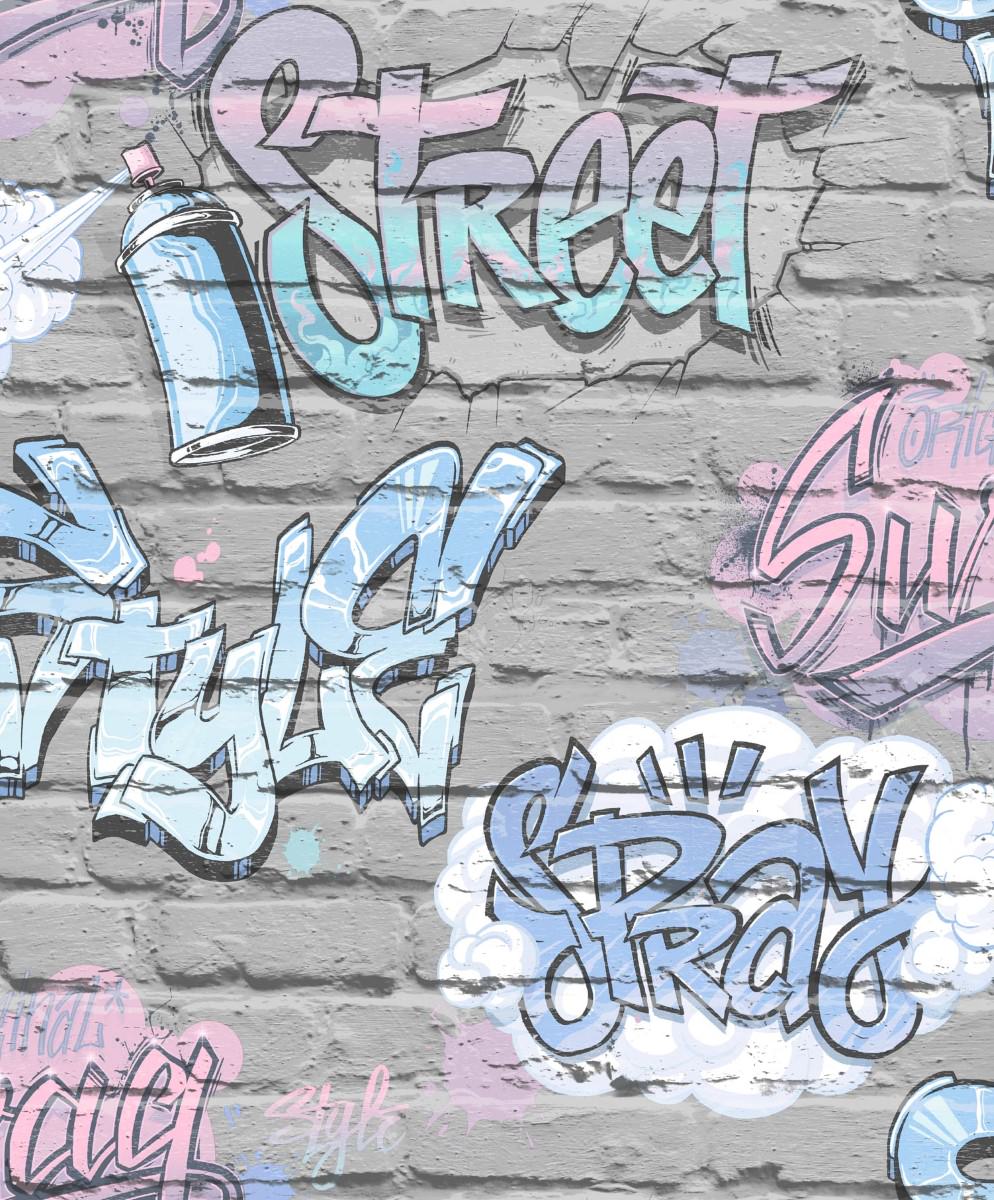 Bring a cool in trend urban feel to your home with this amazing graffiti wallpaper from Muriva.