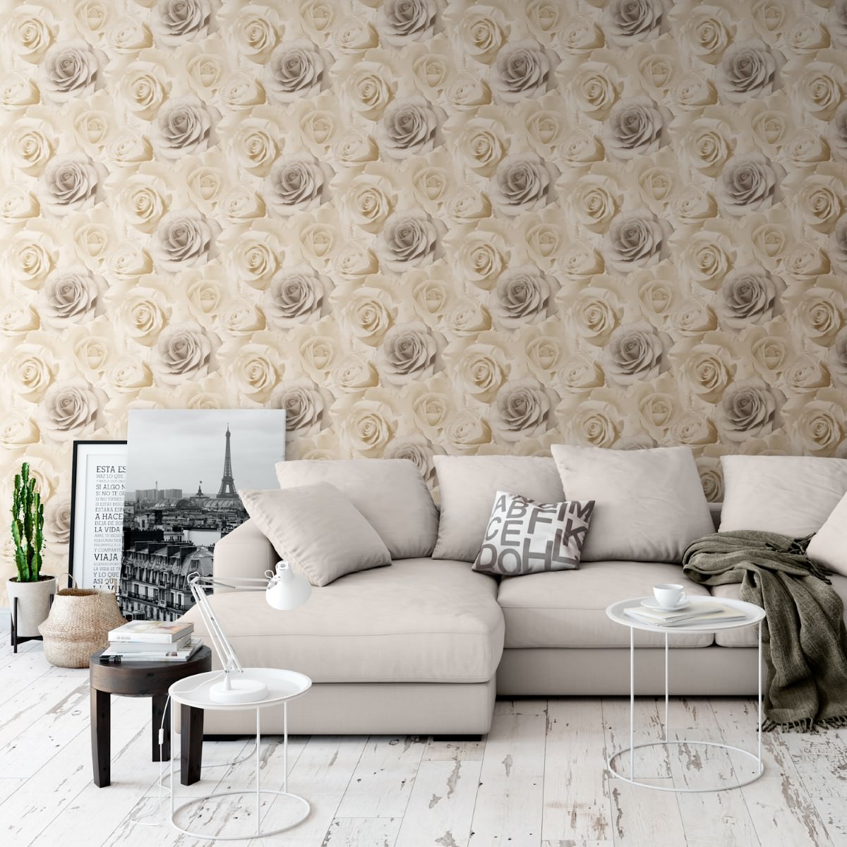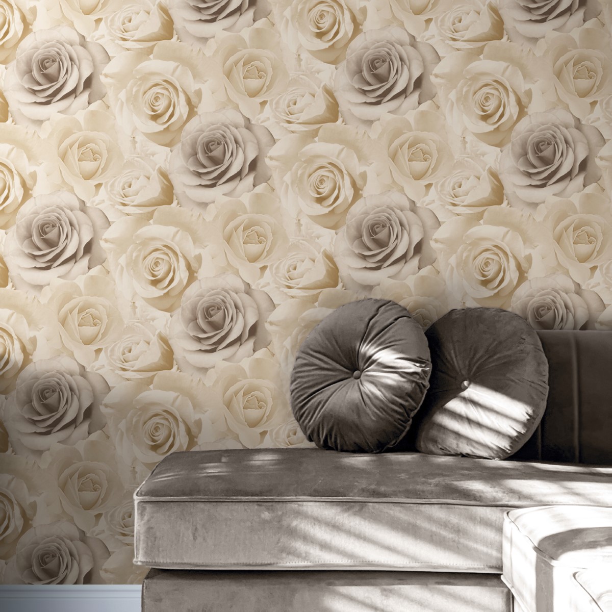 In a wonderful colour scheme, the Muriva Madison Rose Floral Bloom Wallpaper works well in any room of the home but is especially well suited to a bedroom or living room.