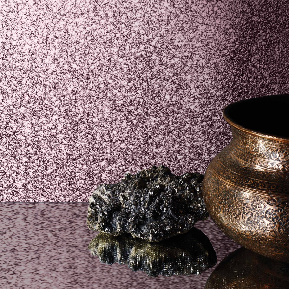 The wallpaper features a metallic glitter finish which sparkles brilliantly as it catches and reflects the light.