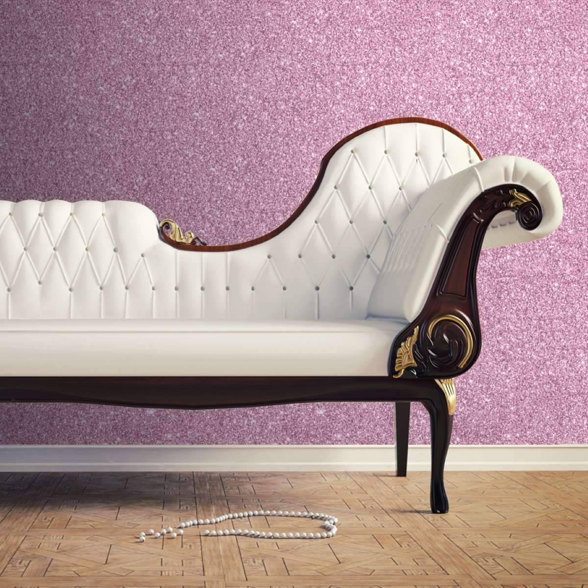 The wallpaper features a metallic glitter finish which sparkles brilliantly as it catches and reflects the light.