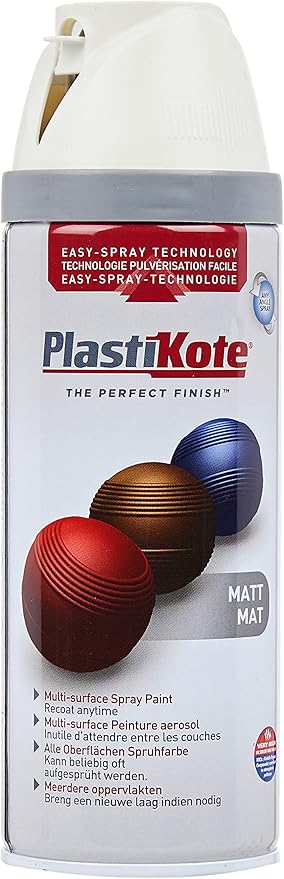 Plasti-Kote Premium Gloss spray paint formula gives an enhanced, consistent coverage in its new can design. The new easy spray technology provides added control to make spray painting easier, faster and cleaner than ever before. Each coat is ultra smooth, providing flawless coverage that dries quickly to a tough, durable finish. The paint can be recoated at anytime for simple, faster project completion. The can’s large, comfortable finger pad requires 33% less finger pressure than other spray paint cans, and the twist and lock mechanism means there is no separate top to remove or replace after use. Its cap and button design shields the finger from paint for a cleaner spray-painting process.