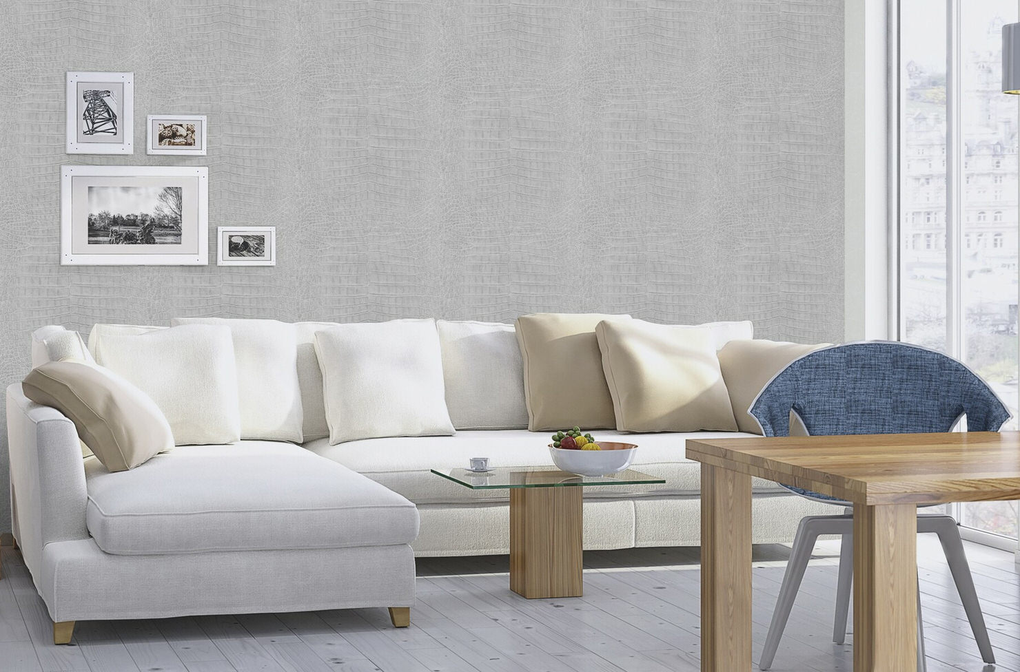 The non-woven wallpaper convinces with its luxurious crocodile skin look in the elegant colours with metallic effect and creates a feel-good atmosphere to relax.
