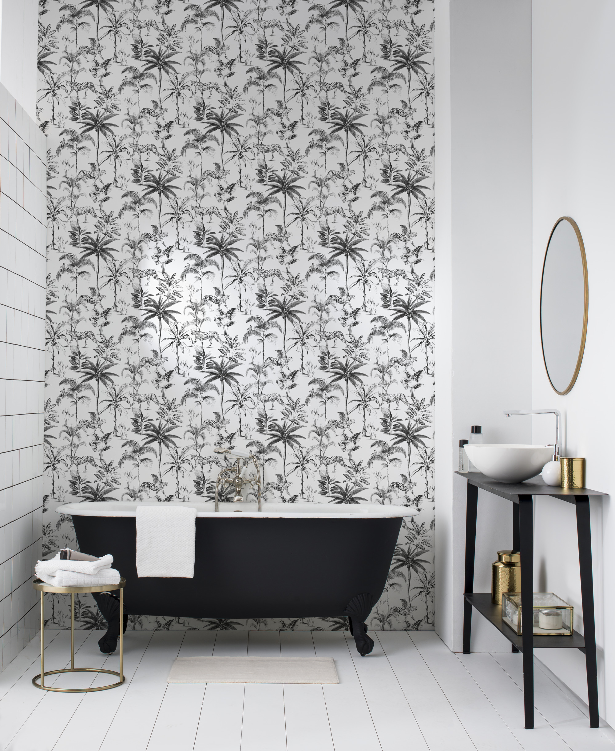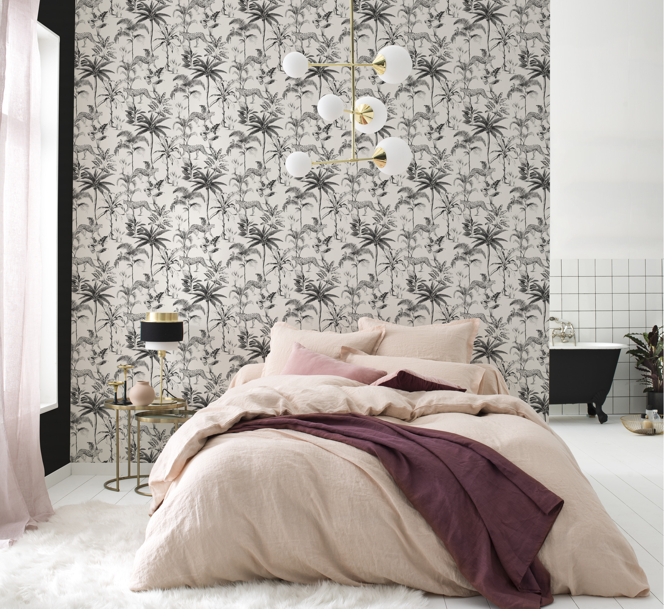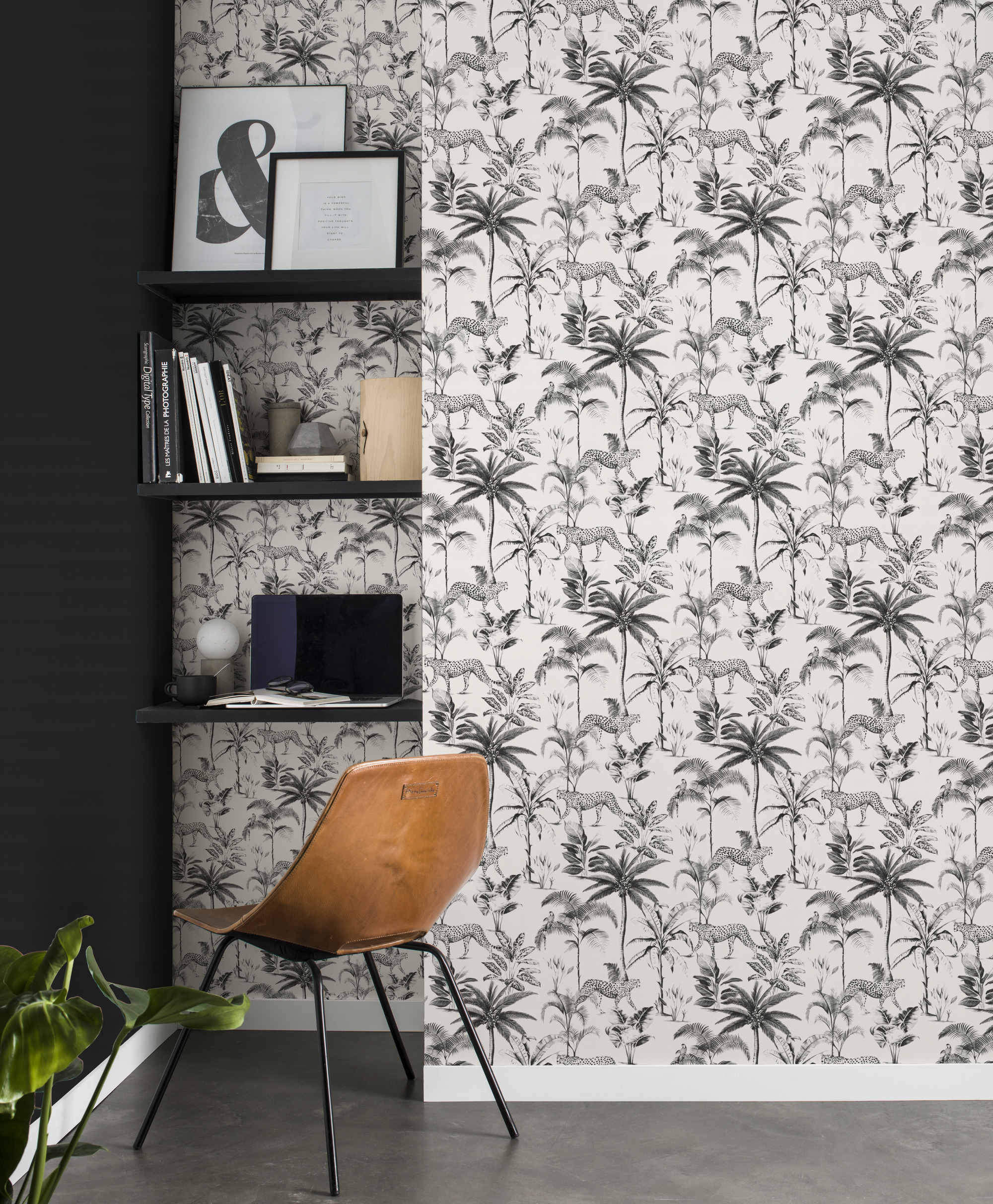The Rasch Savannah Leopard Palm Tree Jungle Wallpaper can be used to make the perfect feature wall or throughout a room.