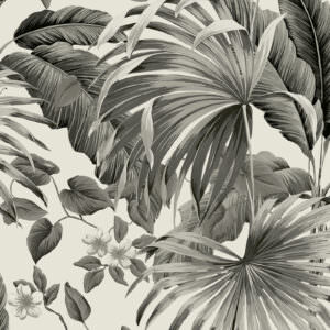 Belgravia Retreat Floral Leaf Textured Wallpaper Grey 54446