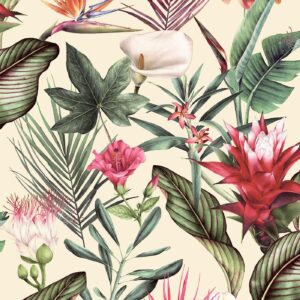 Debona Floral Leaf Tropical Plant Jungle Leaves Cream Wallpaper 5072
