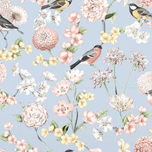 Debona Limoges Floral Birds Robin Flowers Nature Animals Blue Wallpaper 5031