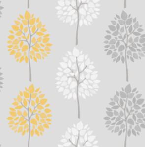 Fine Decor Feature Tree Foliage Grey & Yellow Wallpaper FD41594