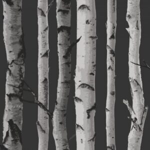 Fine Decor Distinctive Birch Tree Black/Silver Flat Surface Wallpaper FD31052