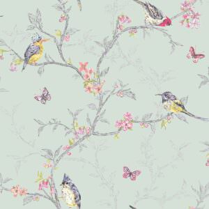 Holden Decor Phoebe Birds White Soft Teal Wallpaper 98083