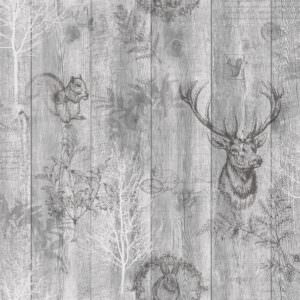 Holden Decor Stag Wood Panel Grey Wallpaper 90090