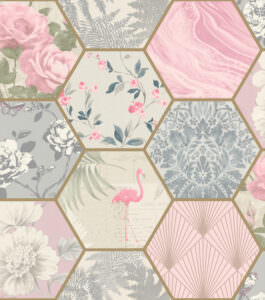 Rasch Vintage Hexagon Pink & Grey Wallpaper 249538