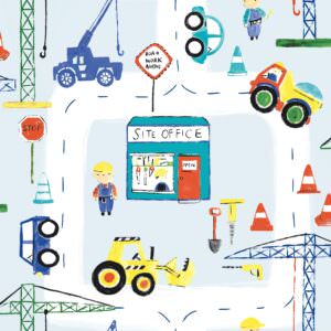 Holden Decor Road Works Ahead Blue, Red & Yellow Wallpaper 11051