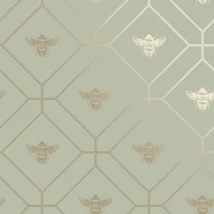 Holden Decor Honeycomb Bee Geo Green/Gold Metallic Flat Surface Wallpaper 13080