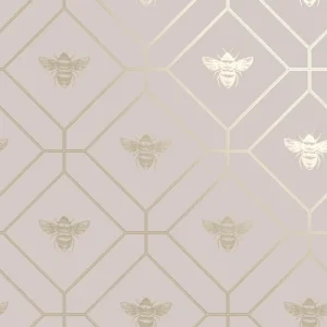 Holden Decor Honeycomb Bee Geo Pink/Gold Metallic Flat Surface Wallpaper 13083