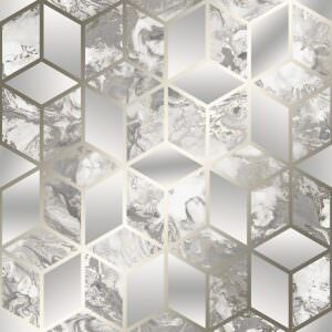 Muriva Elixir Cube Marble Silver Wallpaper 166510