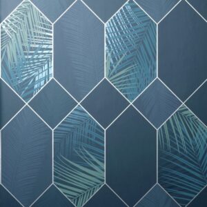Fine Decor Miami Geometric Leaf Navy/Silver Metallic Washable Wallpaper FD42837