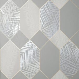 Fine Decor Miami Geometric Leaf Grey / Gold Metallic Washable Wallpaper FD42835