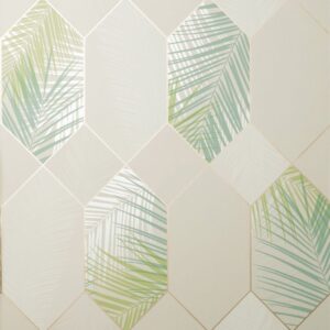 Fine Decor Miami Geometric Leaf Natural / Green Washable Wallpaper FD42834