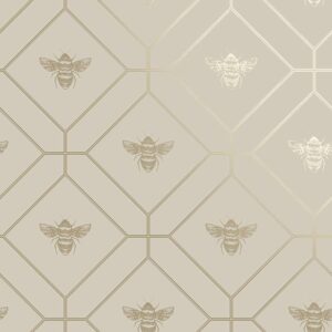 Holden Decor Honeycomb Bee Geo Taupe/Gold Metallic Flat Surface Wallpaper 13082