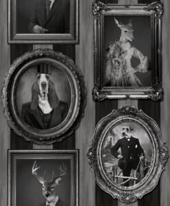 Muriva Novelty Dogs in Frames Grey & Black Wallpaper J59309