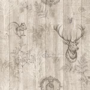 Holden Decor Stag Wood Panel Beige Wallpaper 90091
