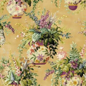 Holden Delamere Floral Vase Ochre Green Textured Wallpaper 13480
